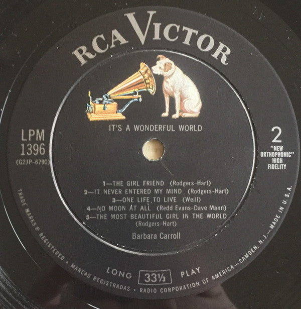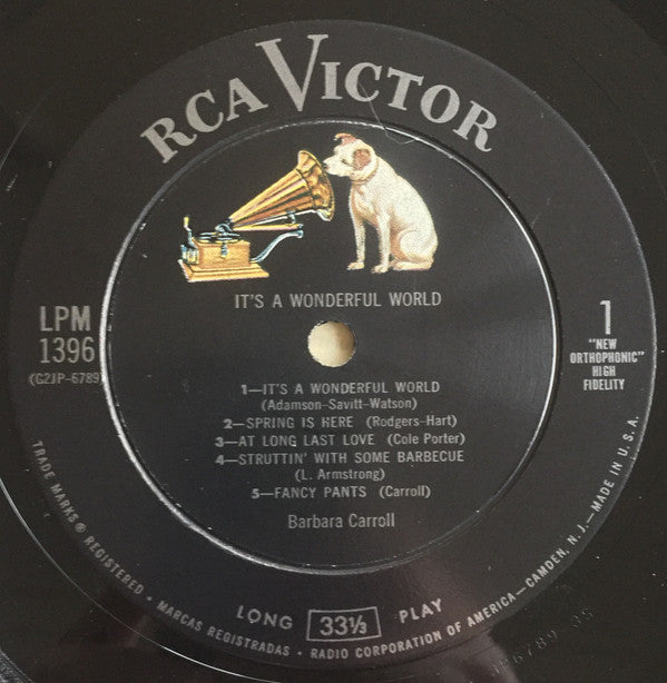 Barbara Carroll Trio - It's A Wonderful World (LP, Album, Mono)