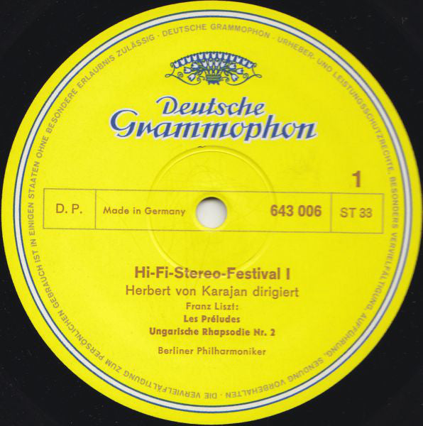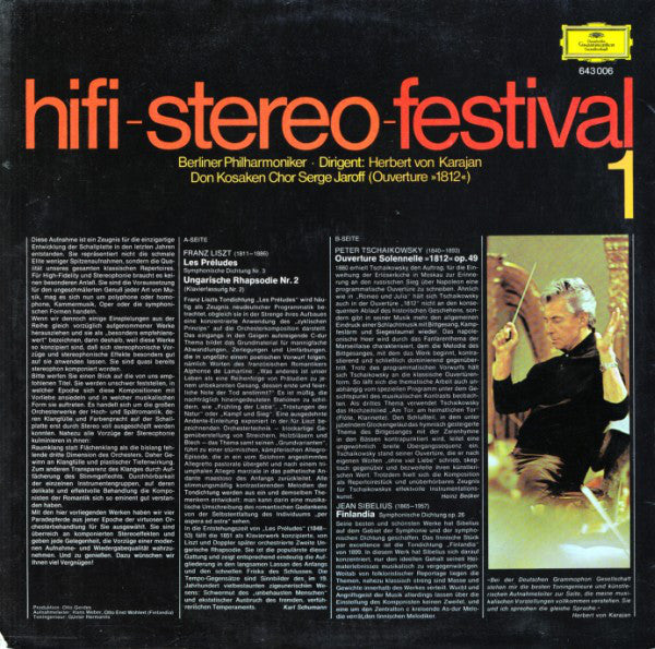 Berliner Philharmoniker, Herbert von Karajan – Franz Liszt, Pyotr Ilyich Tchaikovsky, Jean Sibelius - Hifi-Stereo-Festival 1 (LP, Comp)
