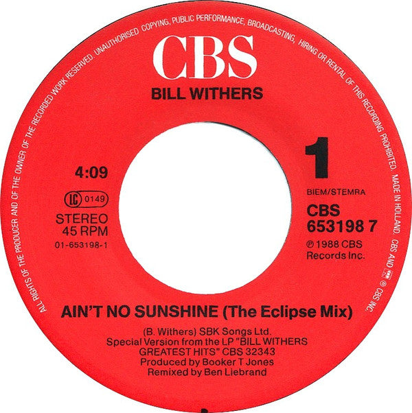 Bill Withers - Ain't No Sunshine (The Eclipse Mix) (7", Single)
