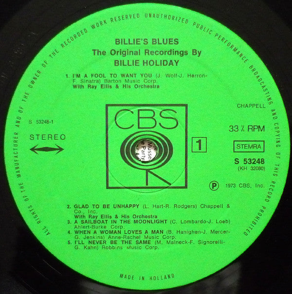 Billie Holiday - Billie's Blues (The Original Recordings By Billie Holiday) (LP, Comp, Mono)