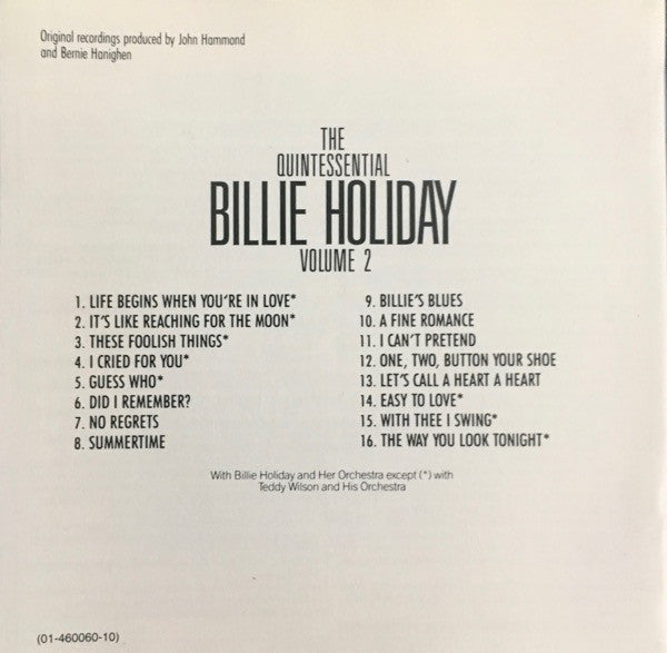 Billie Holiday - The Quintessential Billie Holiday Volume 2 (CD, Comp, Mono, RM)
