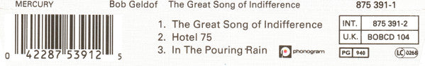 Bob Geldof - The Great Song Of Indifference (CD, Maxi)