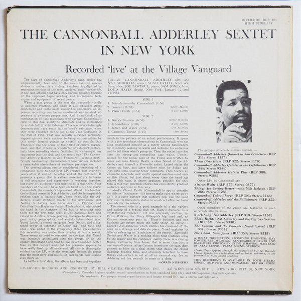 Cannonball Adderley Sextet - In New York (LP, Album, Mono, Dee)
