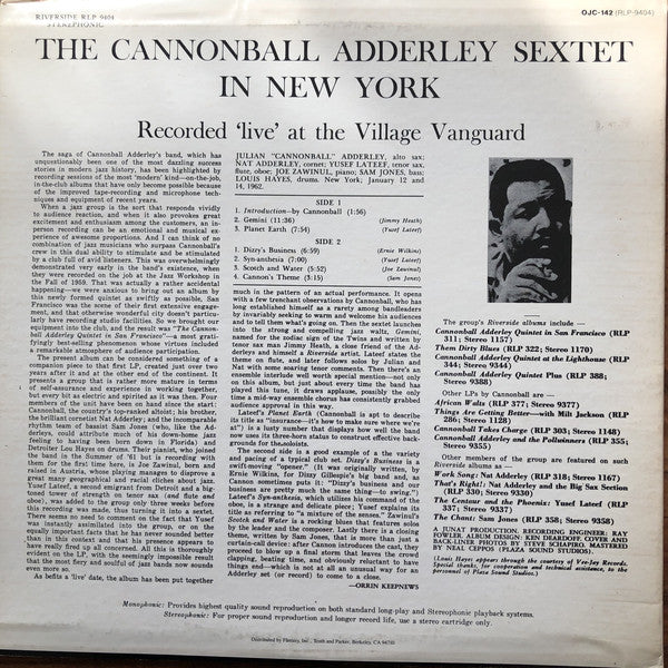 Cannonball Adderley Sextet - In New York (LP, Album, RE)