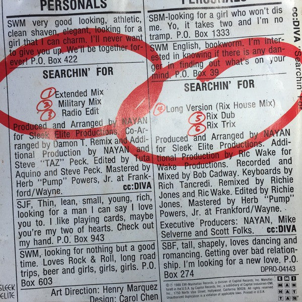 cc: DIVA - Searchin' For (CD, Single, Promo)