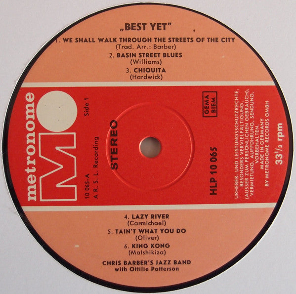 Chris Barber's Jazz Band With Ottilie Patterson - Best Yet (LP)