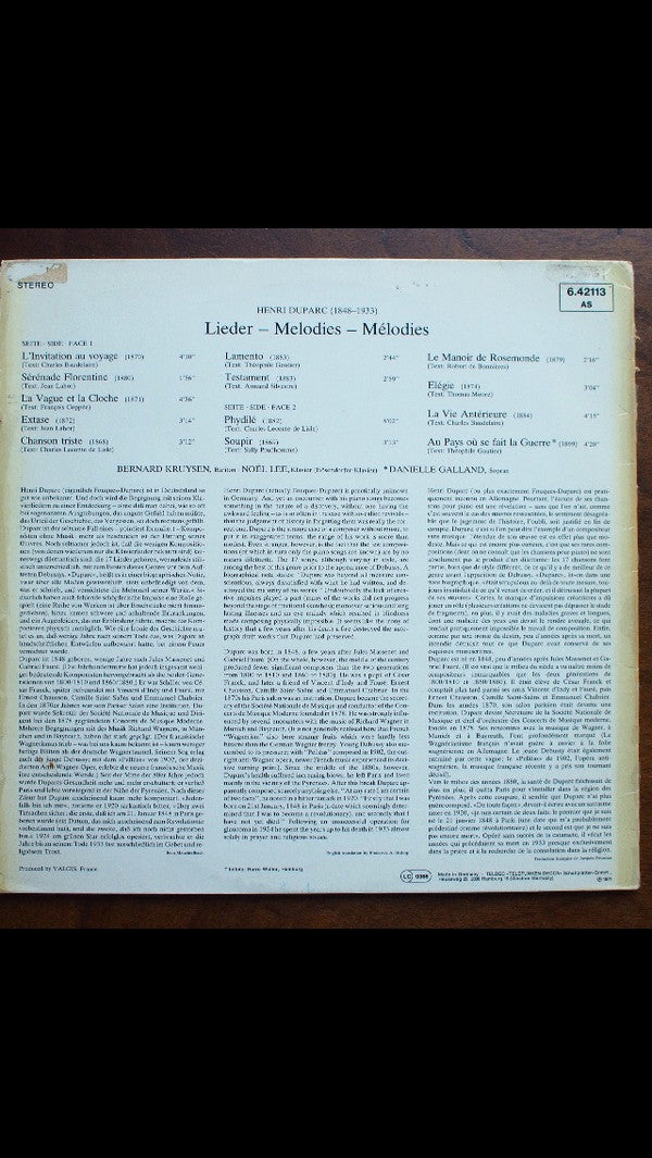 Claude Debussy, Bernard Kruysen, Noël Lee - Lieder. Songs. Melodies (LP)