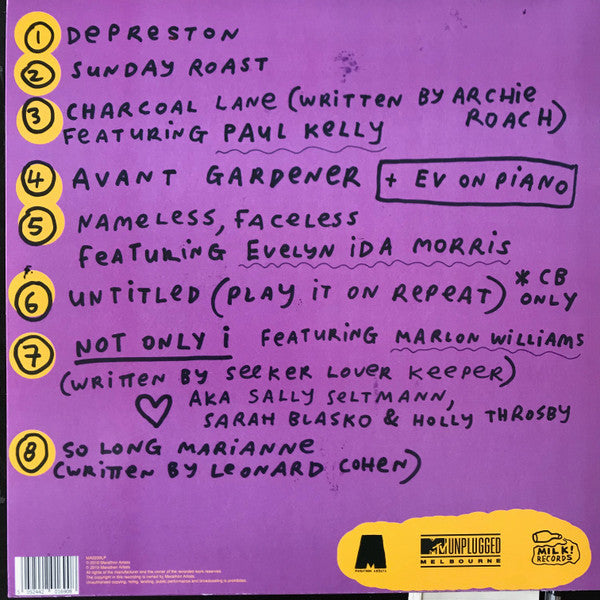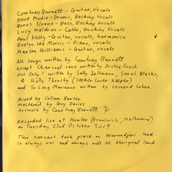 MADE IN CANADA sticker on shrink wrap. Tracks are listed sequentially regardless of sides. Printed yellow paper inner sleeve. Recorded live at Howler (Brunswick, Melbourne) on Tuesday 22nd October 2019. This concert took place on Wurundjeri land. It always was and always will be Aboriginal land.