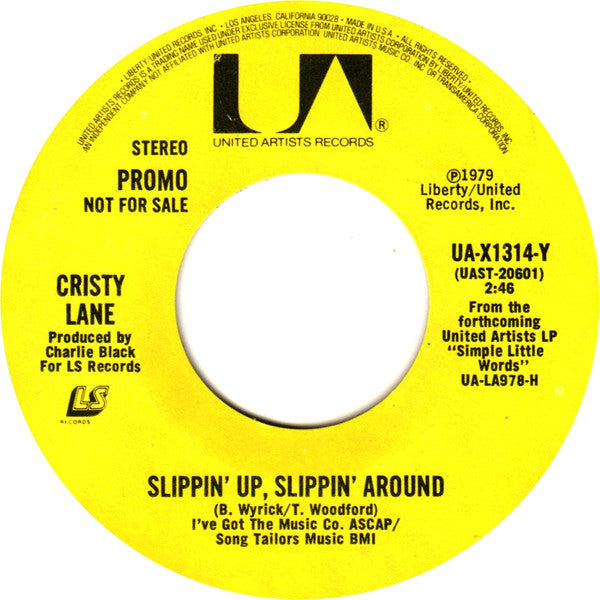 Cristy Lane - Slippin' Up, Slippin' Around (7", Single, Promo)