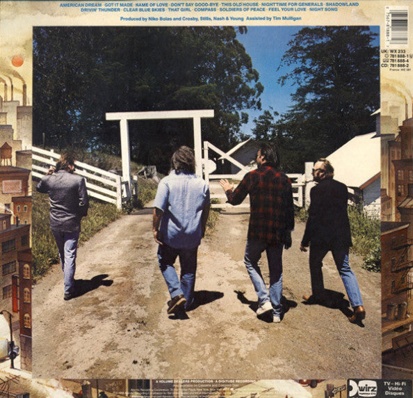 Catalog number WX 233 is for the UK, 781 888-1 is for other countries A Volume Dealers Production / A Digitube Recording / Mastered at Masterdisk, N.Y., N.Y. Tracks A1 to A6 & B1 to B7: engineered at Redwood Digital, Woodside, California. Mixed at A&M Records, Studio A, Hollywood, California and at Record One, Los Angeles. Track duration A4: 'Don't Say Goodbye' / 4.23 on inner sleeve / 3.23 on label. Track A6: Stephen Stills guitar solo inspired by James Marshall Hendrix. 'This album is dedicated to Jan Crosby, Anne Stills, Susan Nash, Pegi Young.' On center labels: ℗ + © 1988 Atlantic Recording Corp. for the U.S. and WEA International Inc. for the world outside of the U.S. On back cover: Manufactured in Germany - Pressé en Allemagne. TELDEC Record Service GmBH. A Warner Communications Company