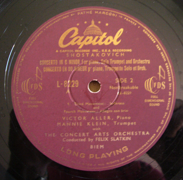 Dmitri Shostakovich, Victor Aller, Manny Klein With The Concert Arts Orchestra Conducted By Felix Slatkin - Concerto In C Minor For Piano With Trumpet And String Orchestra (10", Mono)