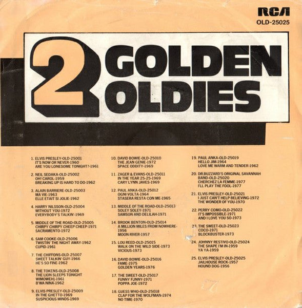 Manufactured by RCA BV Holland from master recordings of RCA Records No 25 in the '2 Golden Oldies' series from RCA. Track A: (P)1957 RCA Records Track B: (P)1956 RCA Records