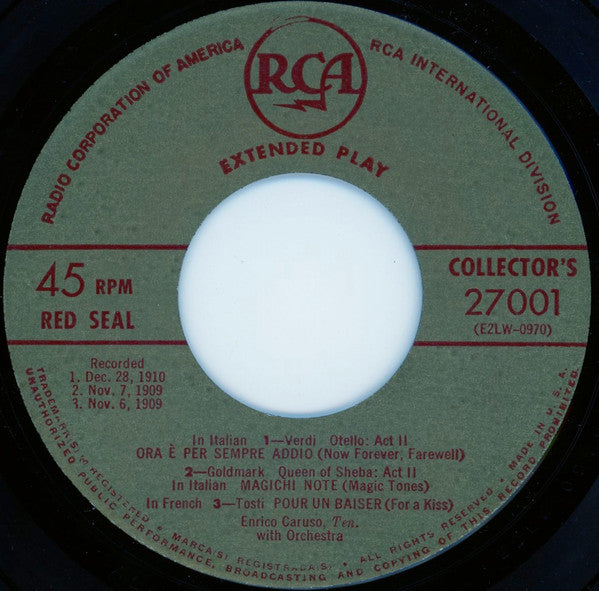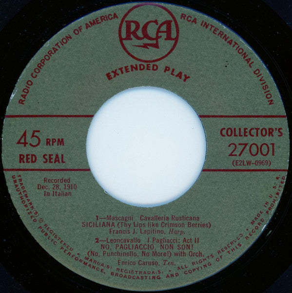 Enrico Caruso - Caruso Sings Five Famous Selections (7", EP)