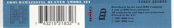 Eros Ramazzotti - Quanto Amore Sei (CD, Single)
