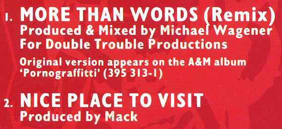 Labels: Side A: ℗ 1990 A&M Records, Inc Los Angeles Side B: ℗ 1991 A&M Records, Inc Los Angeles Made in Germany Side A: Original version appears on the A&M album "Pornograffitti" 395 313-1 Produced and mixed for Double Trouble Productions Sleeve: 1: ℗ 1990, 2: ℗ 1991 A&M Records, Inc. Los Angeles. © 1991 A&M Records, Inc. Los Angeles. A&M Records Ltd. are the exclusive licencees for the UK. Catalog numbers: INT 390 764-7 UK AM 764