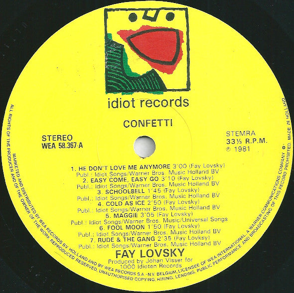 All songs published by Idiot Songs/Warner Brother Music Holland, BV. Manufactured and distributed by WEA Records BV, Hilversum, Holland and by WEA Records NV/SA, Brussels, Belgium. (W) A Warner Communications Company.