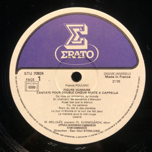 Francis Poulenc, Dan-Olof Stenlund, Uppsala Akademiska Kammarkör, KFUM:s Kammarkör - Figure Humaine ; Messe En Sol Majeur ; Quatre Petites Prières De Saint François D'Assise (LP, Album)