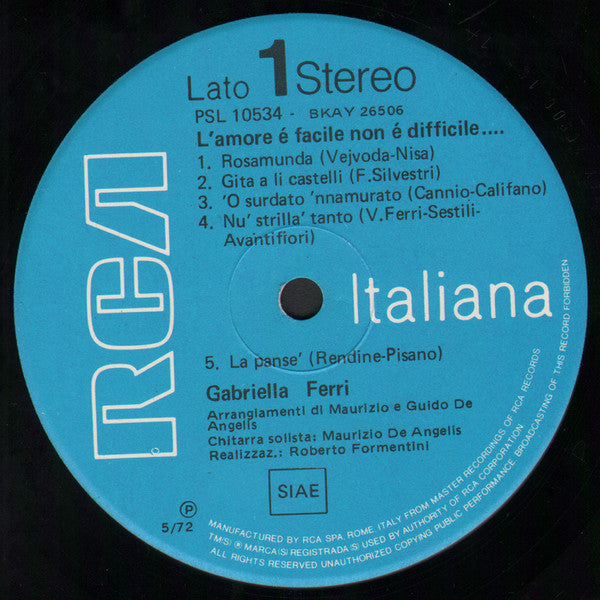 Gabriella Ferri - L'Amore È Facile Non È Difficile... (LP, Album, Gat)