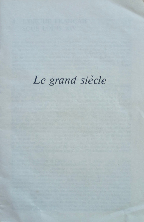 Booklet "Le grand siècle"(20 pages) with French liner notes about vol. 4, vol. 5 and vol. 6 of the series "Le livre d'or de l'orgue français".