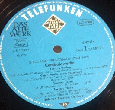 Girolamo Frescobaldi, Bob van Asperen - Cembalowerke · Harpsichord Works · Œuvres Pour Clavecin (LP, Album)