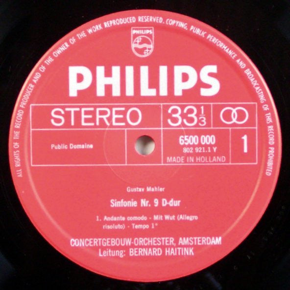 On spine: 6700 021 .2 LP. Mahler - Sinfonie Nr. 9 - Bernard Haitink Philips