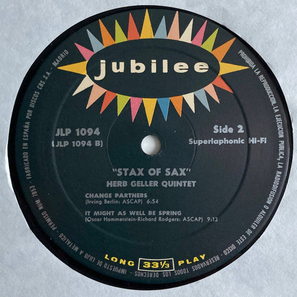 Herb Geller - Stax Of Saxs (LP, Album, M/Print, RE)