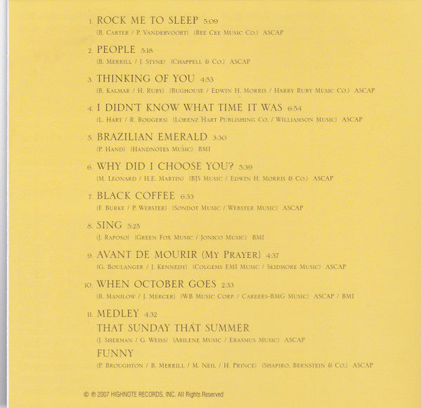 Recorded at Van Gelder Recording Studio, Englewood Cliffs, NJ, May 22, 2007.