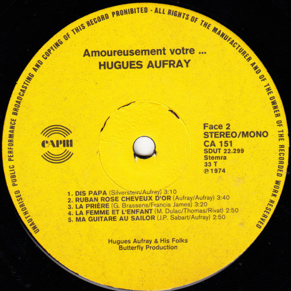 Hugues Aufray - Amoureusement Votre ... (LP, Album)
