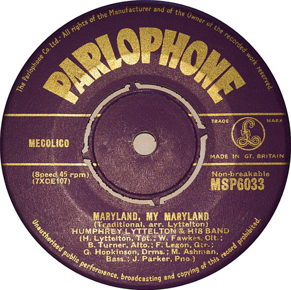 Humphrey Lyttelton And His Band - Maryland, My Maryland / Blue For Waterloo (7", Single)