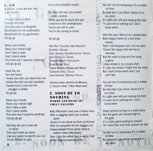 On track 1 spoken word written by Meridel Le Sueur from "I Was Marching".