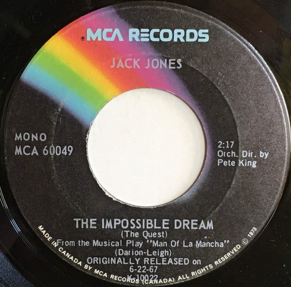 Jack Jones - The Impossible Dream (The Quest) / Strangers In The Night (7", Single, RE)