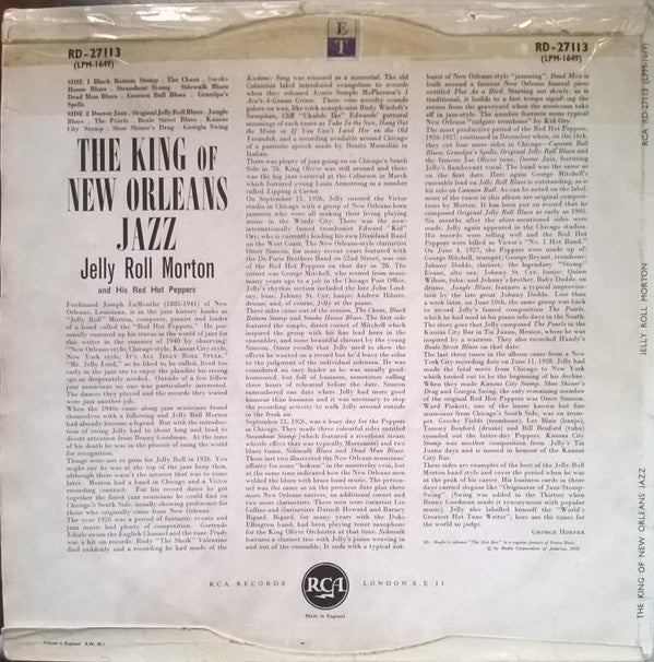 On cover: "THE KING OF NEW ORLEANS JAZZ JELLY ROLL MORTON famous recordings with his RED HOT PEPPERS".