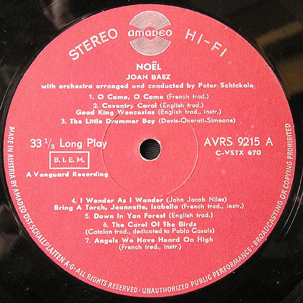 All titles except The Little Drummer Boy and I Wonder As I Wander, Copyright 1966, Fennario Music Publishers Inc, ASCAP