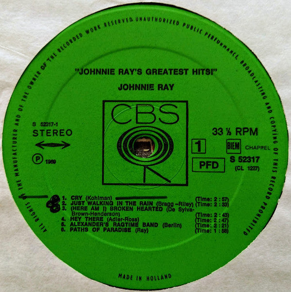Johnnie Ray - Johnnie Ray's Greatest Hits (LP, Comp)