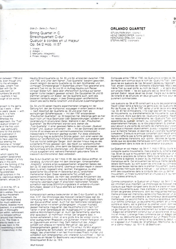 Joseph Haydn, Orlando Quartet - String Quartets = Streichquartette Op.54 Nos. 1 & 2 (LP)