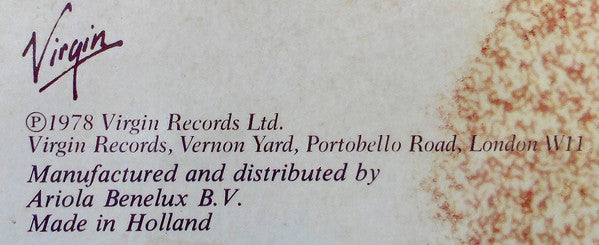 Recorded primarily at Britannia Row Studios, Islington. Different labels compared to the other Dutch version.