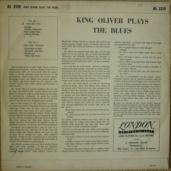 King Oliver, Ida Cox, Sara Martin - Plays The Blues (10", Comp)