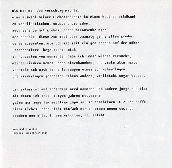 Konstantin Wecker - Liebeslieder (CD, Album)