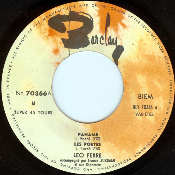 Léo Ferré Accompagné Par Franck Aussman Et Son Orchestre - Paname (7", EP)