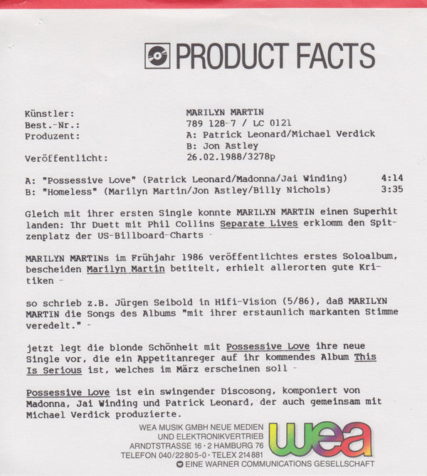 Marilyn Martin - Possessive Love (7", Single, Pap)