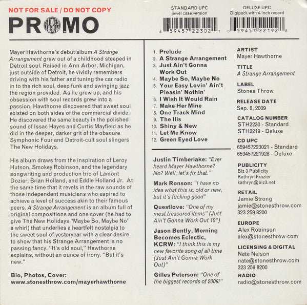 Mayer Hawthorne - A Strange Arrangement (CD, Advance, Album, Copy Prot., Promo)