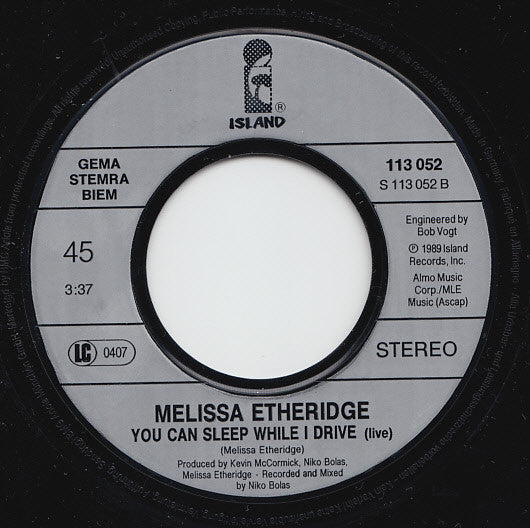 Melissa Etheridge - You Can Sleep While I Drive (7", Single)