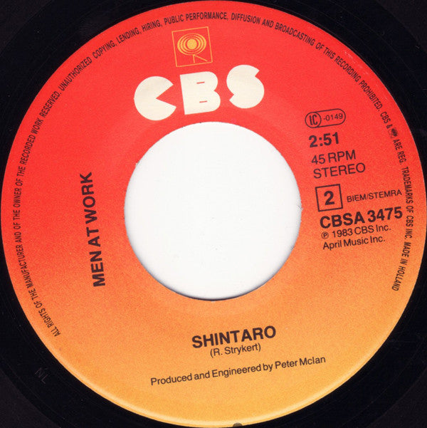 Artwork © 1983 Men At Work / ℗ 1983 CBS Inc./ [... / Made in Holland / Distribué en France par CBS Disques