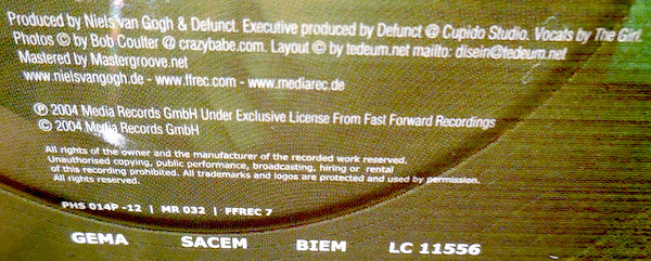 Produced by Niels van Gogh & Defunct. Executive produced by Defunct @ Cupido Studio. Vocals by The Girl. Mastered by mastergroove.net.