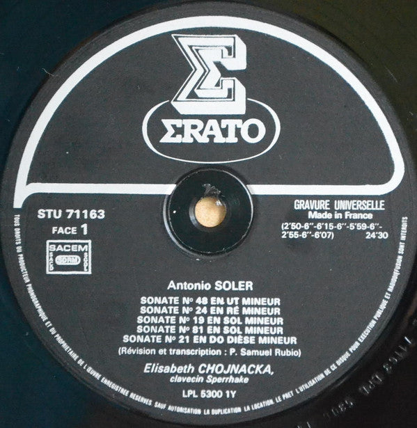 Padre Antonio Soler, Elisabeth Chojnacka - Fandango, Sept Sonatas (LP, Album)