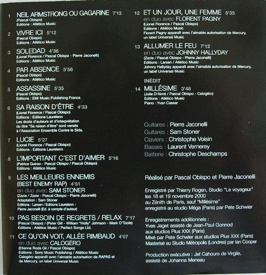 Engineered by Studio "Le Voyageur" 18th & 19th November 2000, recorded live at Zenith de Paris, except "Millésime" at Studio Méga, Paris.