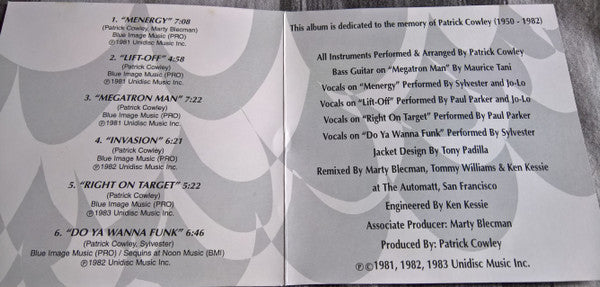 This album is dedicated to the memory of Patrick Cowley (1950 - 1982).
