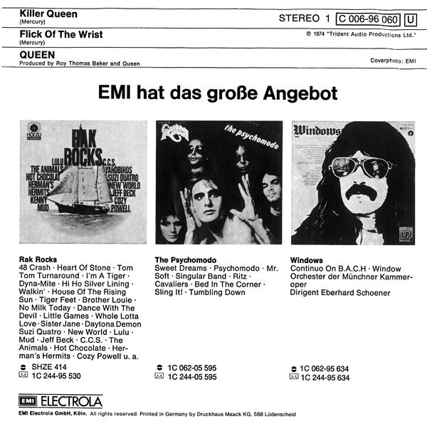EMI Electrola GmbH, Köln. Printed in Germany by Druckhaus Maack KG, 588 Lüdenscheid