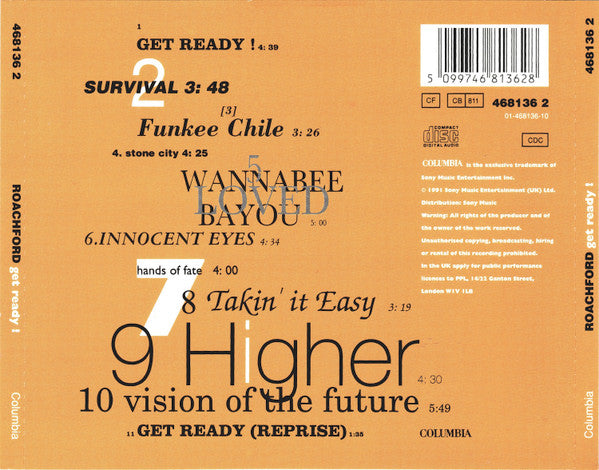 Track 11 title given as 'Get Ready! (Reprise)' on CD face and 'Get Ready (Reprise)' on rear inlay and the booklet.