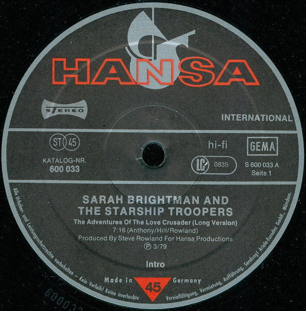 Sarah Brightman and The Starship Troopers - The Adventures Of The Love Crusader (12")